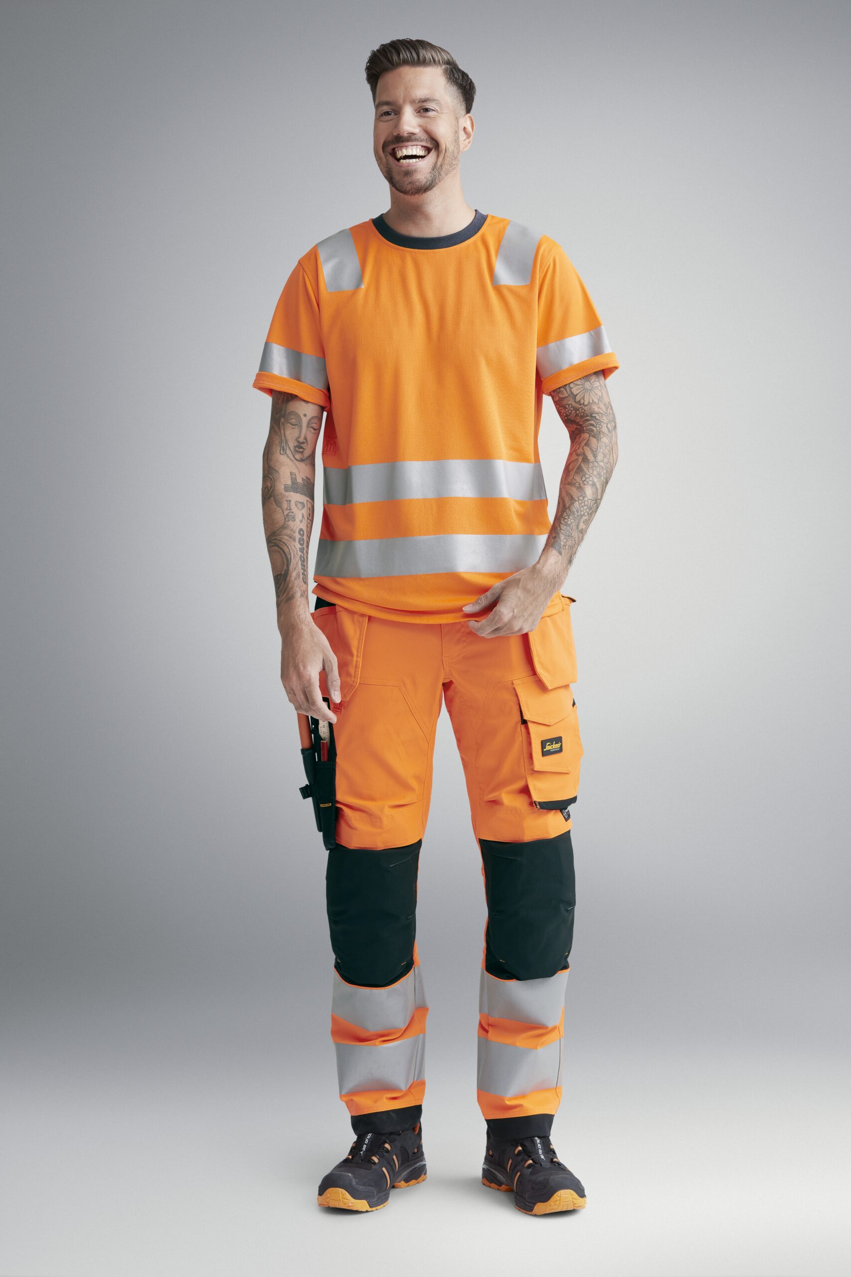 Visoko odsevne in raztegljive delovne hlače, zasnovane za vsakodnevno delo in maksimalno udobje. Dvosmerno raztegljiva tkanina omogoča odlično gibanje in vzdržljivost. Sistem KneeGuard™ ščiti kolena in je dodatno okrepljen z žepi za kolena, ojačanimi z materialom CORDURA®. Certificirano v skladu s standardom EN ISO 20471, Class 2.